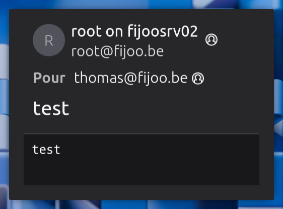 Testez aussi les envois de mails à root, ils doivent arriver dans la boîte mail spécifiée dans /etc/aliases (ex: echo "test" | mail -s "test" root).